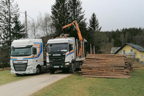 Einen weiteren Teil unseres Dienstleistungsportfolios bilden die Rundholztransporte. Wir transportieren Rundholz für Sie an die von Ihnen gewünschte Zieladresse. Abgestimmt an Ihre individuellen Anforderungen führen wir den Transport entweder mit Fahrzeugen mit Kran oder ohne Kran durch. Bei unseren Fahrzeugen mit Kran übernehmen wir das Be- und Entladen des Holzes für Sie.